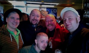 A couple of Fire on McGinnis members, Lazlo and Matt, came by the studio to talk about the remastering of some of their recordings, a wild Czech who made a cartoon of their song about insanity, and their gig tonight at the Rendez. Note Lazlo’s son’s excitement about the interview.