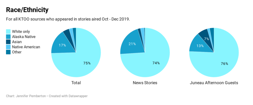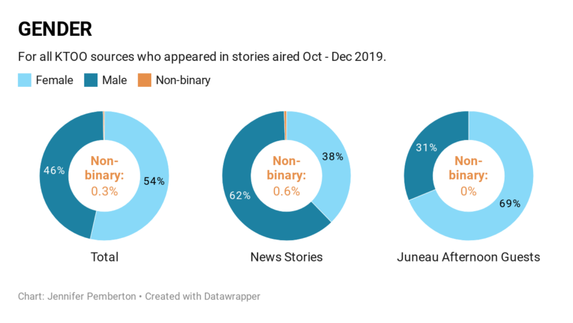 Last October, we started asking everyone who appeared in a news story or was a guest on Juneau Afternoon to identify their gender and race and/or ethnicity.