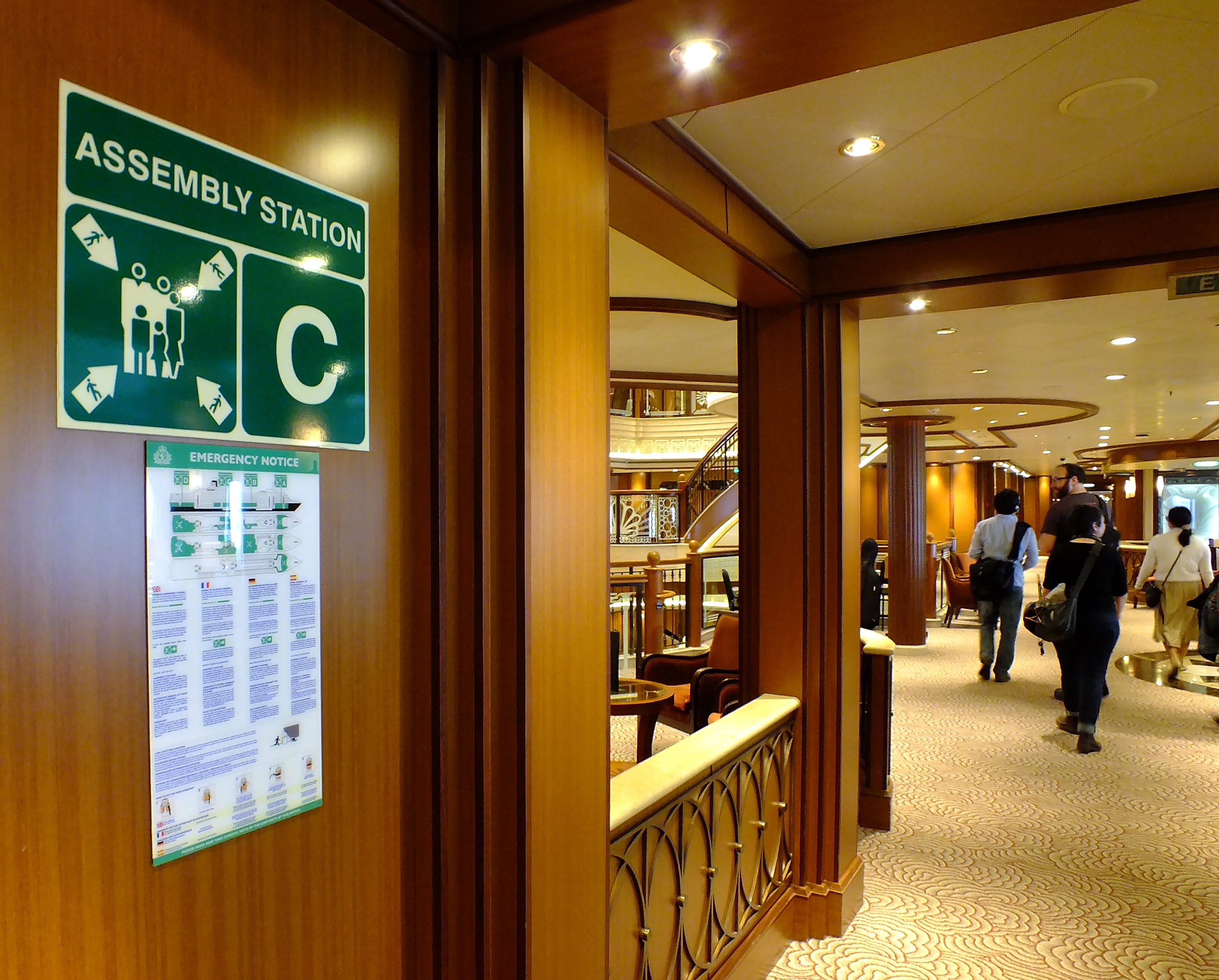 One of the many muster or assembly stations located on the cruise ship Queen Elizabeth. Passengers are supposed to assemble at these areas during a muster drill or a real emergency. (Photo by Matt Miller/KTOO)