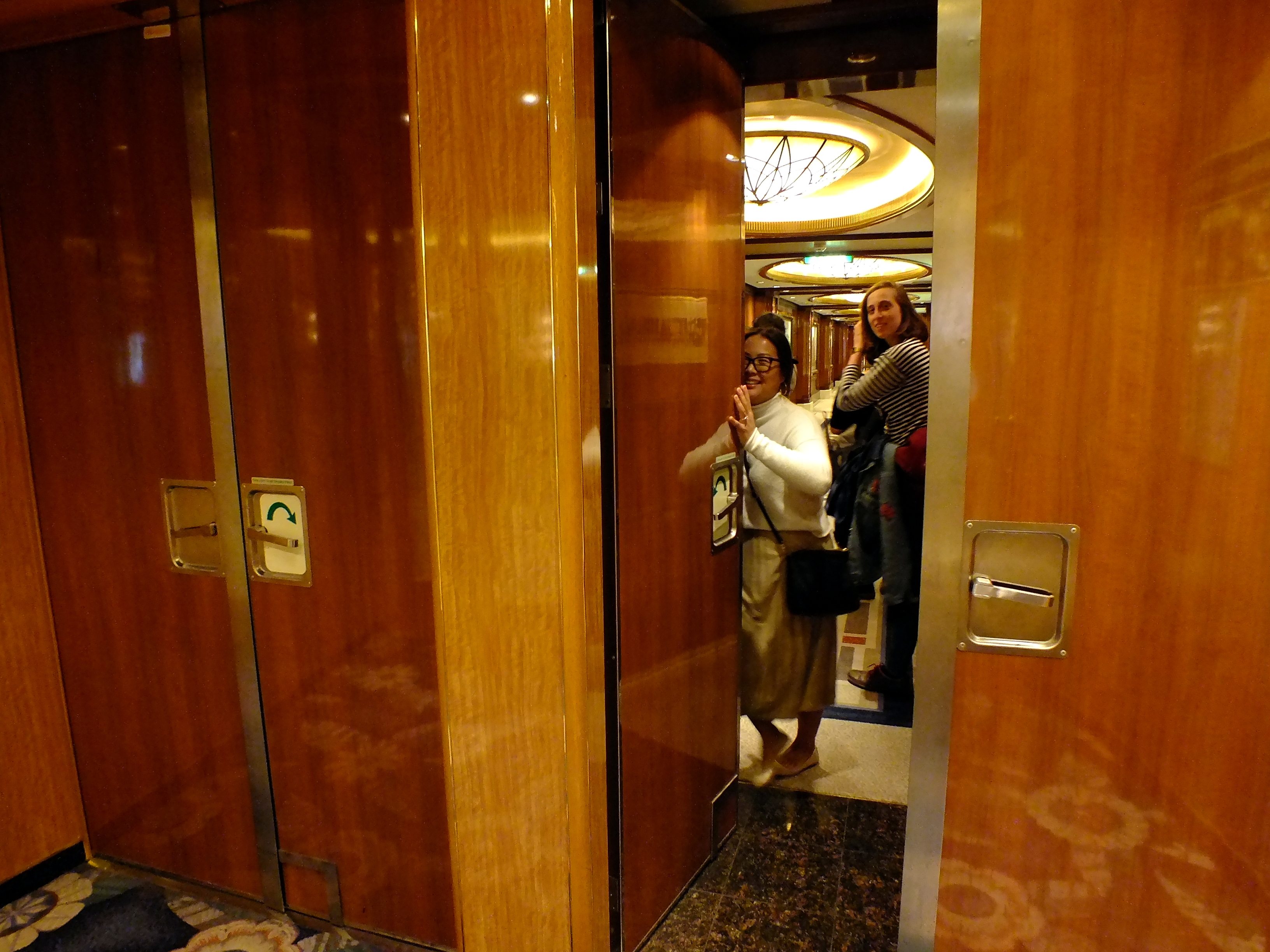 Fire screen doors – like these on the cruise ship Queen Elizabeth – are designed to stay closed to contain a fire, but they can be opened quickly to avoid trapping people. (Photo by Matt Miller/KTOO)