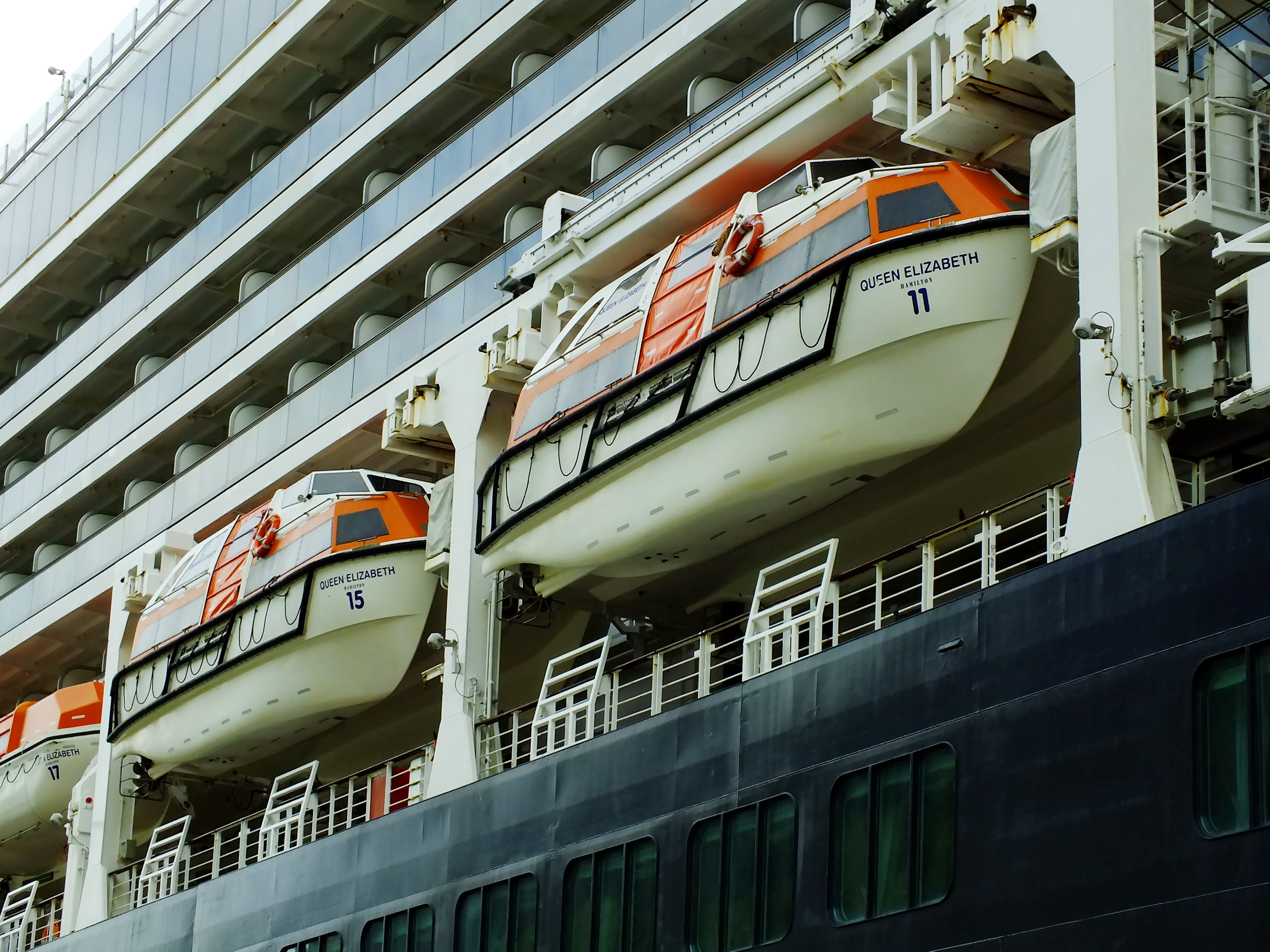 Tops of lifeboats for the cruise ship Queen Elizabeth are painted a color called international safety orange. (Photo by Matt Miller/KTOO)