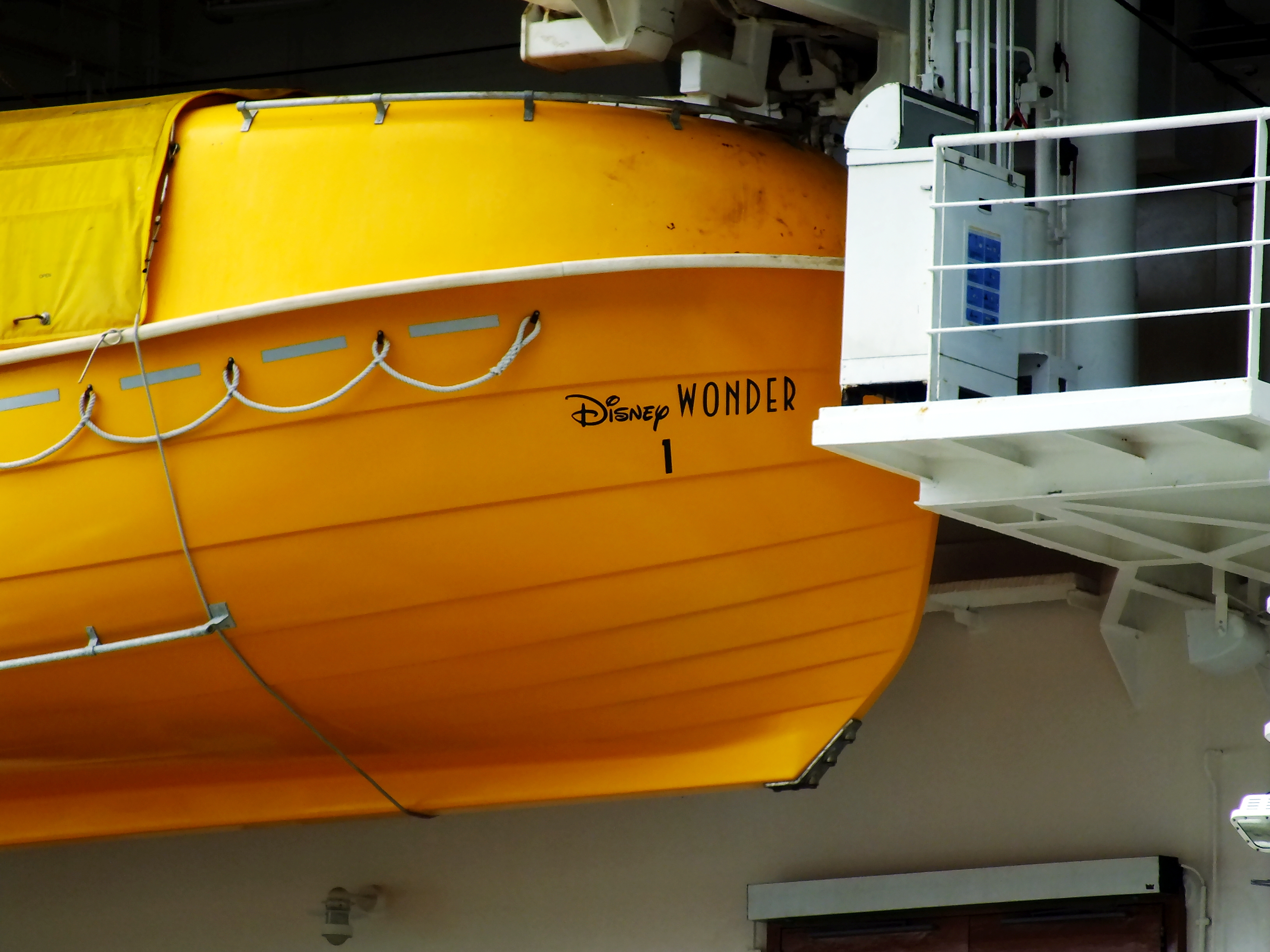Disney had to get approval from international maritime authorities to paint their lifeboats aboard the cruise ship Disney Wonder to look like Donald Duck’s feet. (Photo by Matt Miller/KTOO)