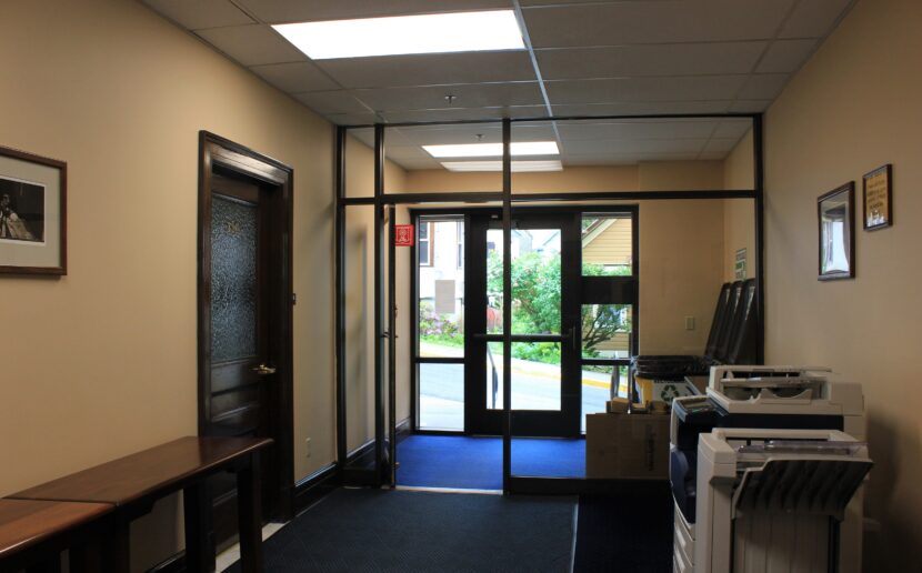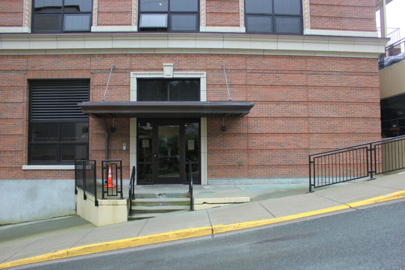 This door, which goes out to Seward Street, was once the employee entrance to the post office. The steep street allows for a street entrance into the second story of the building. (Katie Anastas/KTOO)