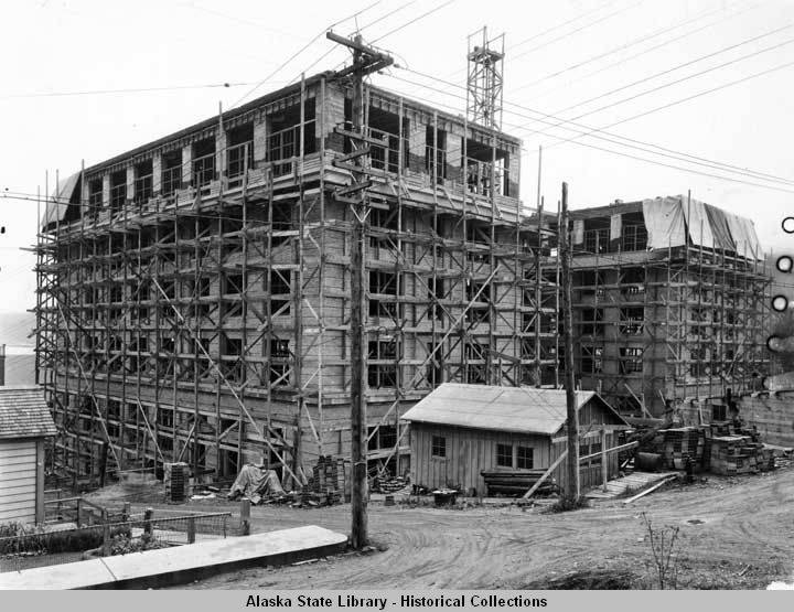 This 1930 photo shows a rear view of the Capitol under construction. (M272-2 Alaska State Library Manuscript Collection)