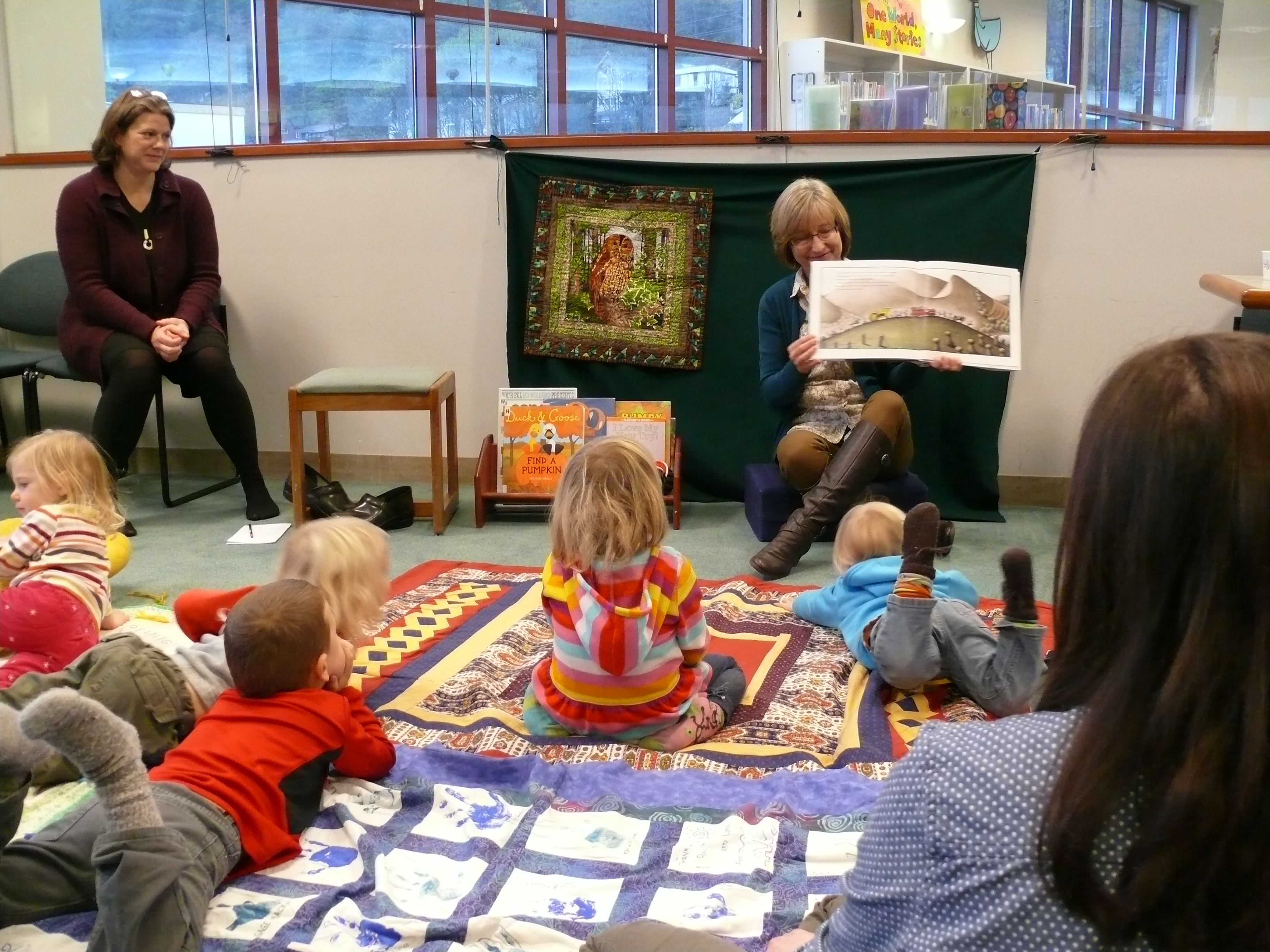 What do Dolly Parton, the Juneau Public Library, and Alaska’s First Lady Sandy Parnell have in common? Children’s Books, and lots of them. On Wednesday morning, library programs coordinator Beth Weigel and Mrs. Parnell read to an attentive group of kids at the downtown Library.