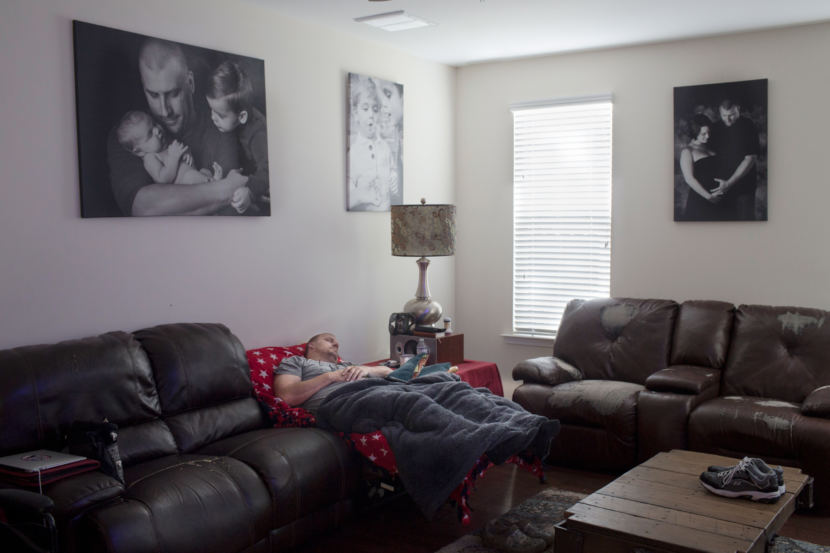 Wilmot was thrown free from the gunner’s turret as the Humvee tumbled. He survived, but with a brain injury, post-traumatic stress disorder and a left arm that still looks sewn-on. The Department of Veterans Affairs rates him 100 percent disabled. George gets lost easily, forgets things — like a pot on the stove — and he falls down hard sometimes, without warning. His wife, Jenn, hasn’t been able to work outside the home because caring for George is a full-time job.
