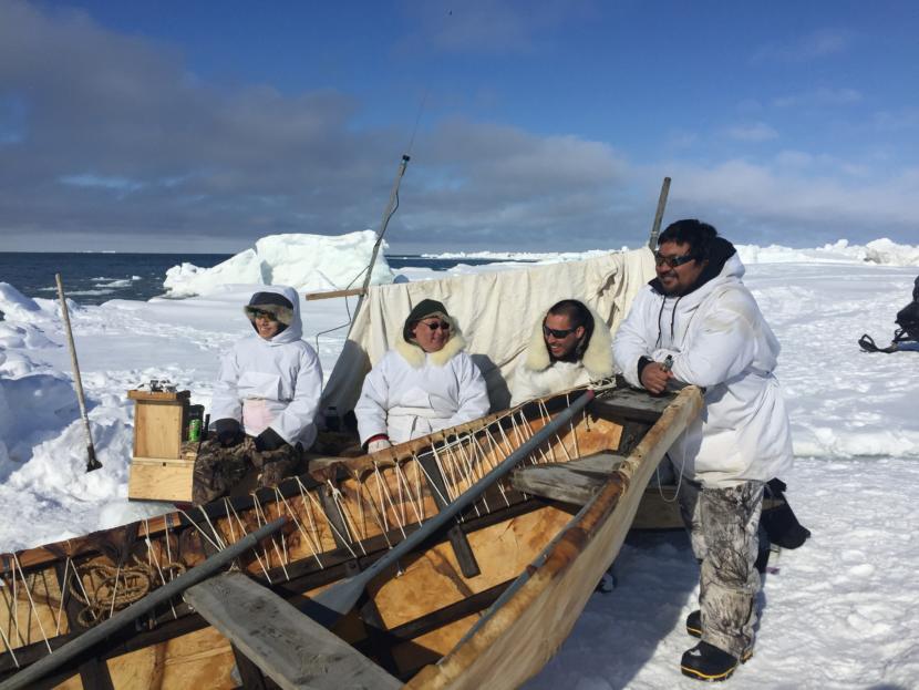 Iñupiat whalers use a sealskin boat, or umiak, in 2019. Voice of the Arctic Iñupiat, an advocacy group, say oil revenues allow North Slope people to live longer, healthier lives. (Ravenna Koenig/Alaska’s Energy Desk)