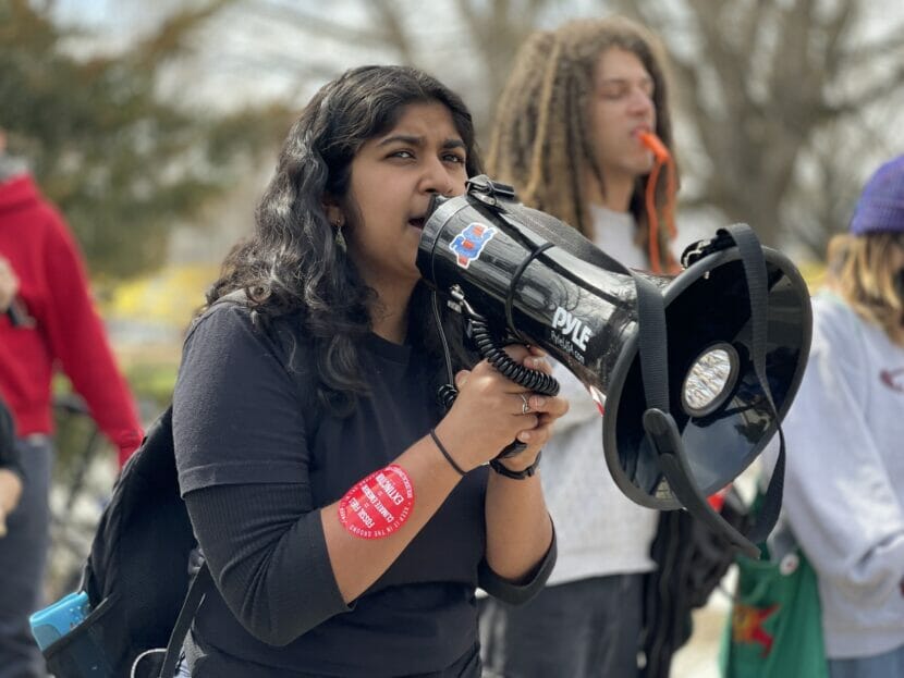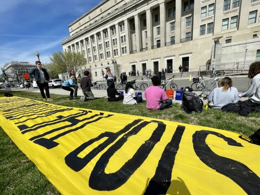 Baltimore art student Nadia Nazar is an organizer with a youth-led climate justice group called Zero Hour, part of a coalition she said organized the event at the Interior Department. She said they want Biden to feel the pressure when he makes future decisions on oil development, and to know that his re-election could be on the line.