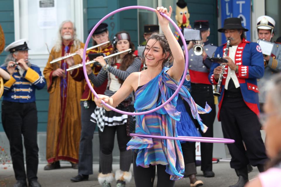 One Juneauite actually did. Valerie Snyder, owner of Douglas’ BrownBoots Costume Company, joined the Chautauqua in Bellingham last month for a crammed week of rehearsals before they hopped the ferry up to Ketchikan. During their parades, Snyder says, “People are genuinely surprised and we get community members to march with us. In Ketchikan, I ran up the sidewalk and I did a little face painting to all the little kids waiting on the side of the street. ”