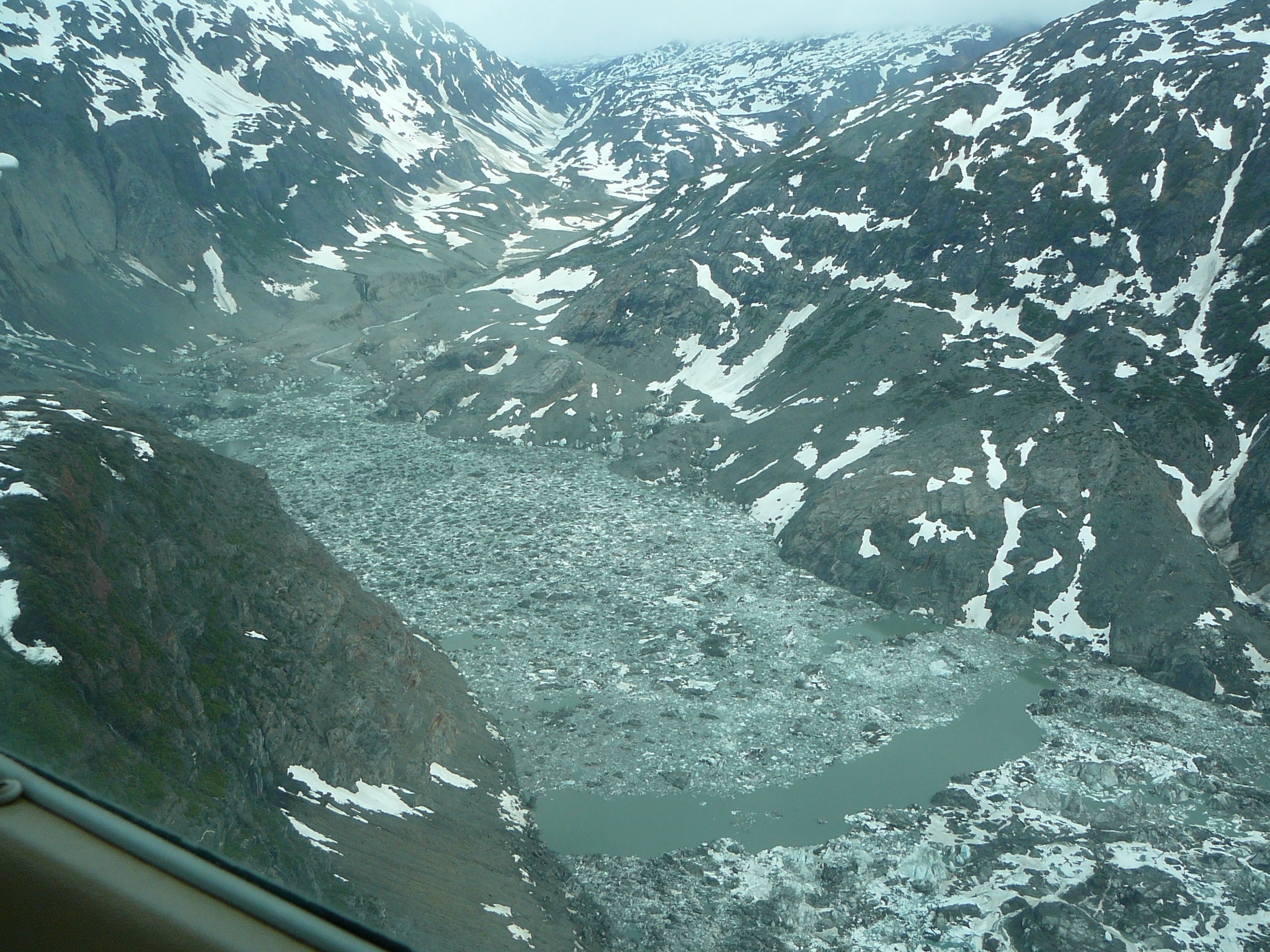 Pilots in British Columbia reported seeing water from Lake No Lake located along the glacier beginning to drain.