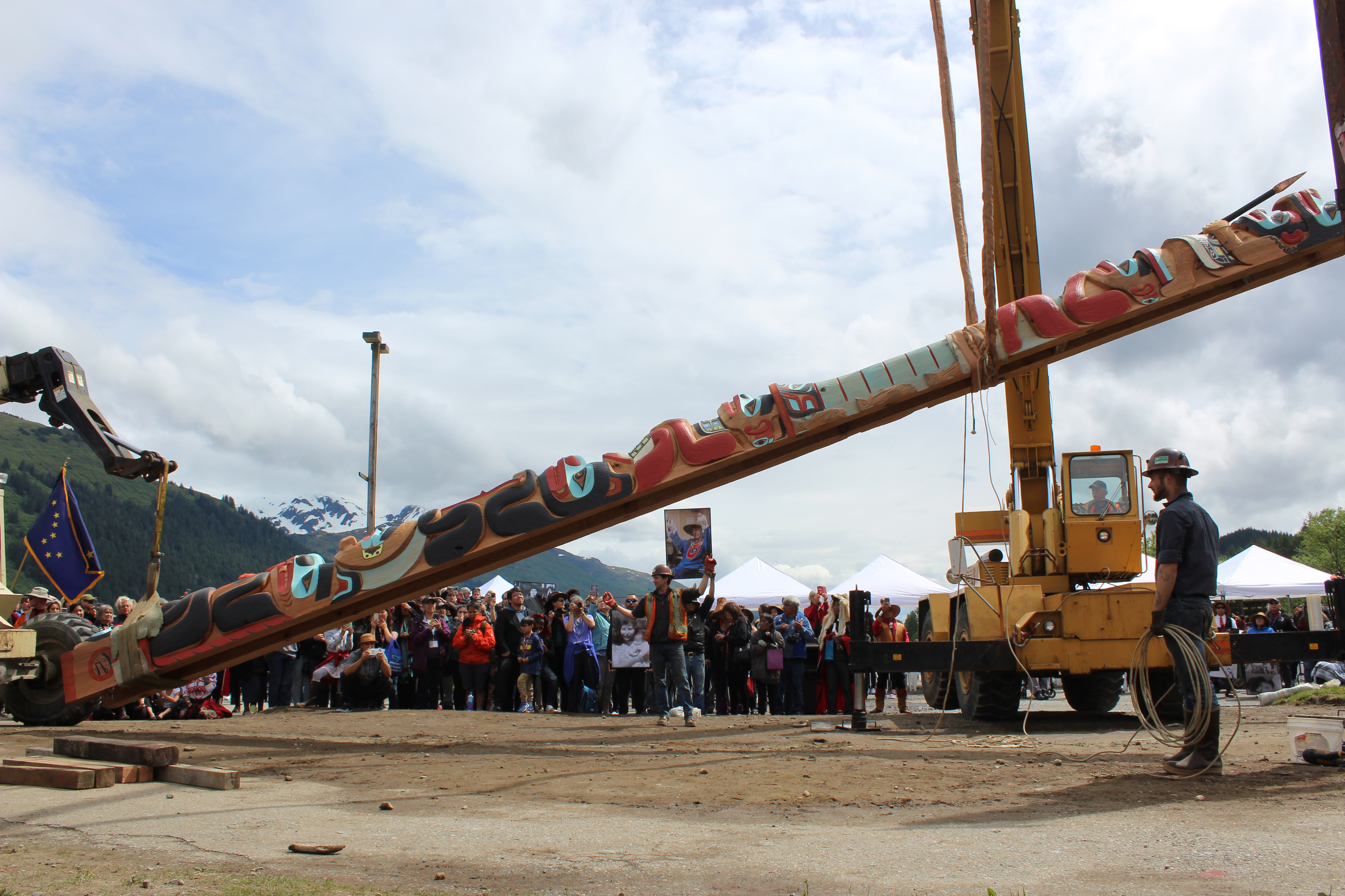 A similar totem pole went up last year in front of Sayéik: Gastineau Community School in recognition of Tlingit graves that were unearthed there during a construction project in 2012.