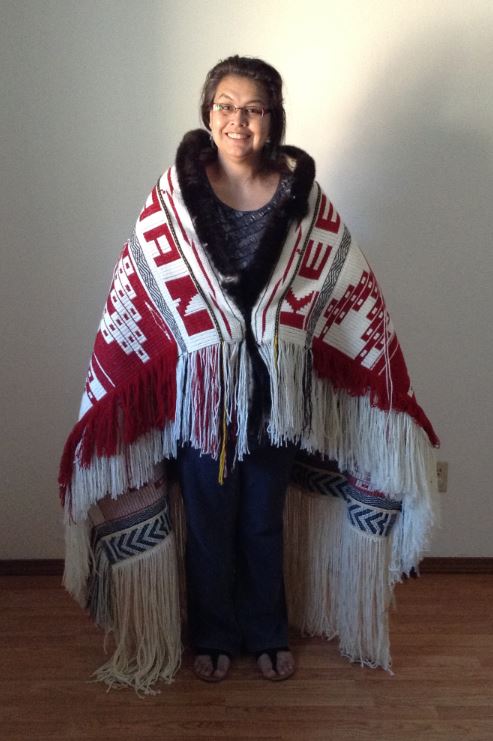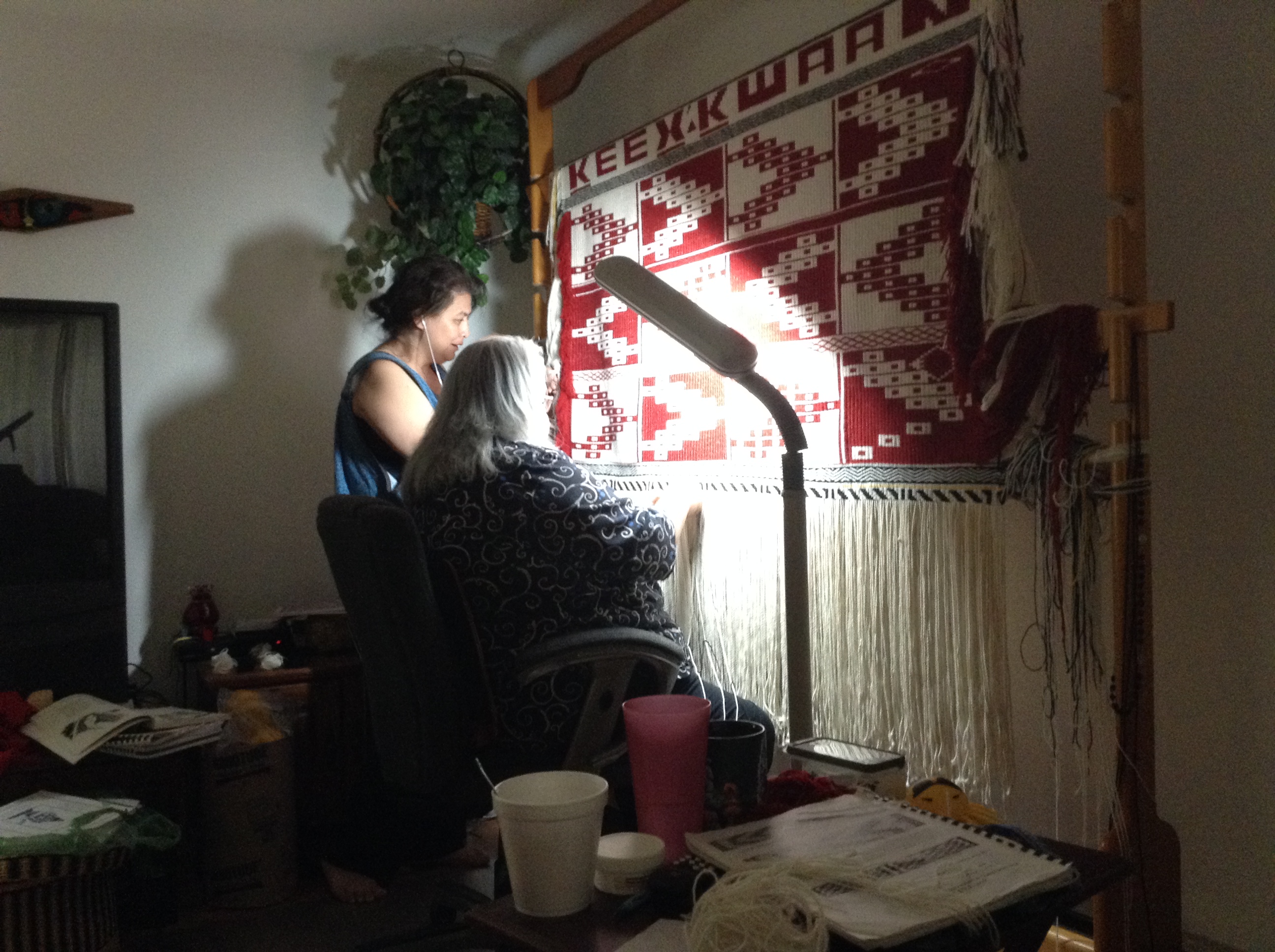 After seven years of studying, Gail received her Ph.D. this past February and had the graduation ceremony in Kake to thank the community. It took her mother three years to finish the robe. In the final year, she brought the loom wherever she went. She weaved in Juneau and Kake. She even brought it to Anchorage.