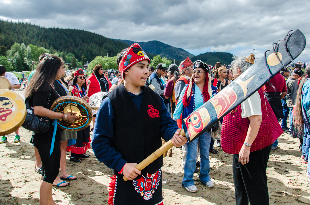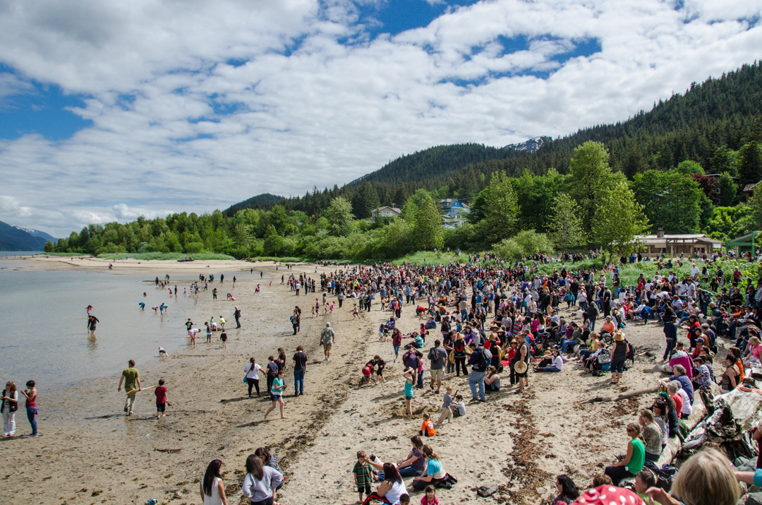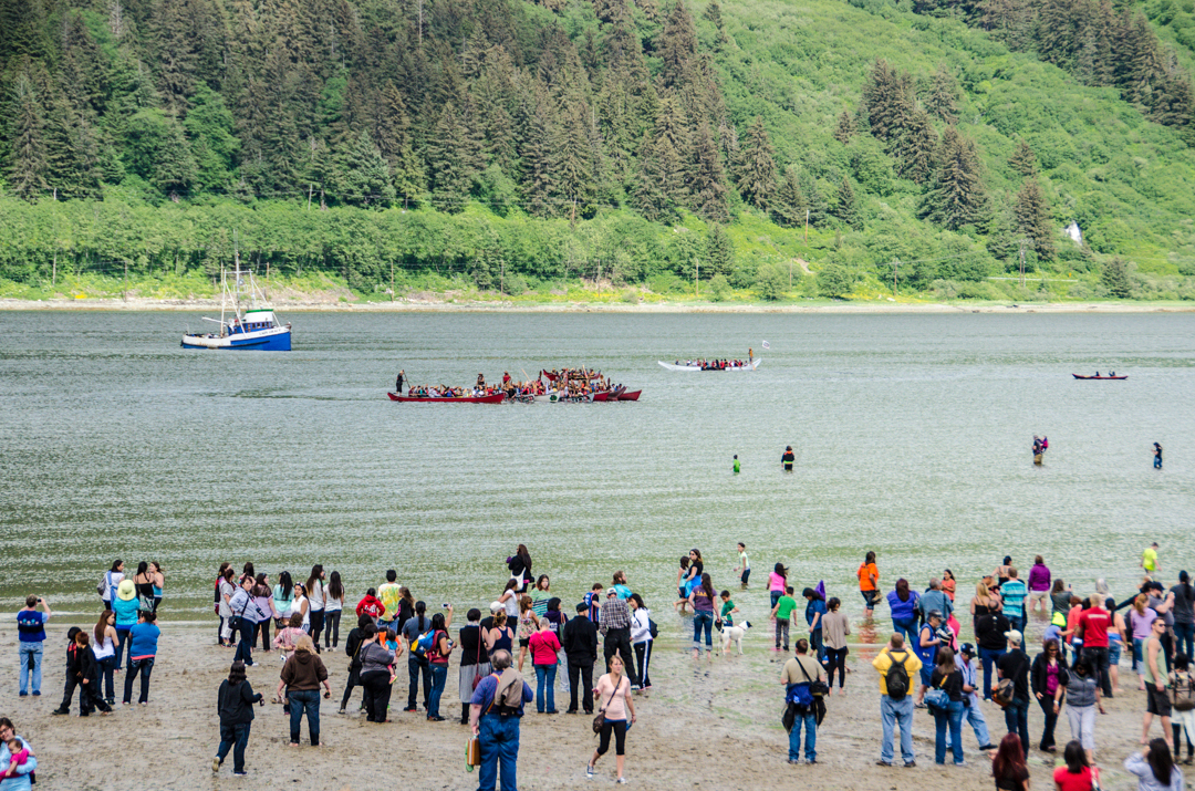 Dozens of paddlers from Yakutat to Metlakatla and places in between landed their canoes on a Juneau beach on their way to the Southeast Native cultural festival Celebration 2014.