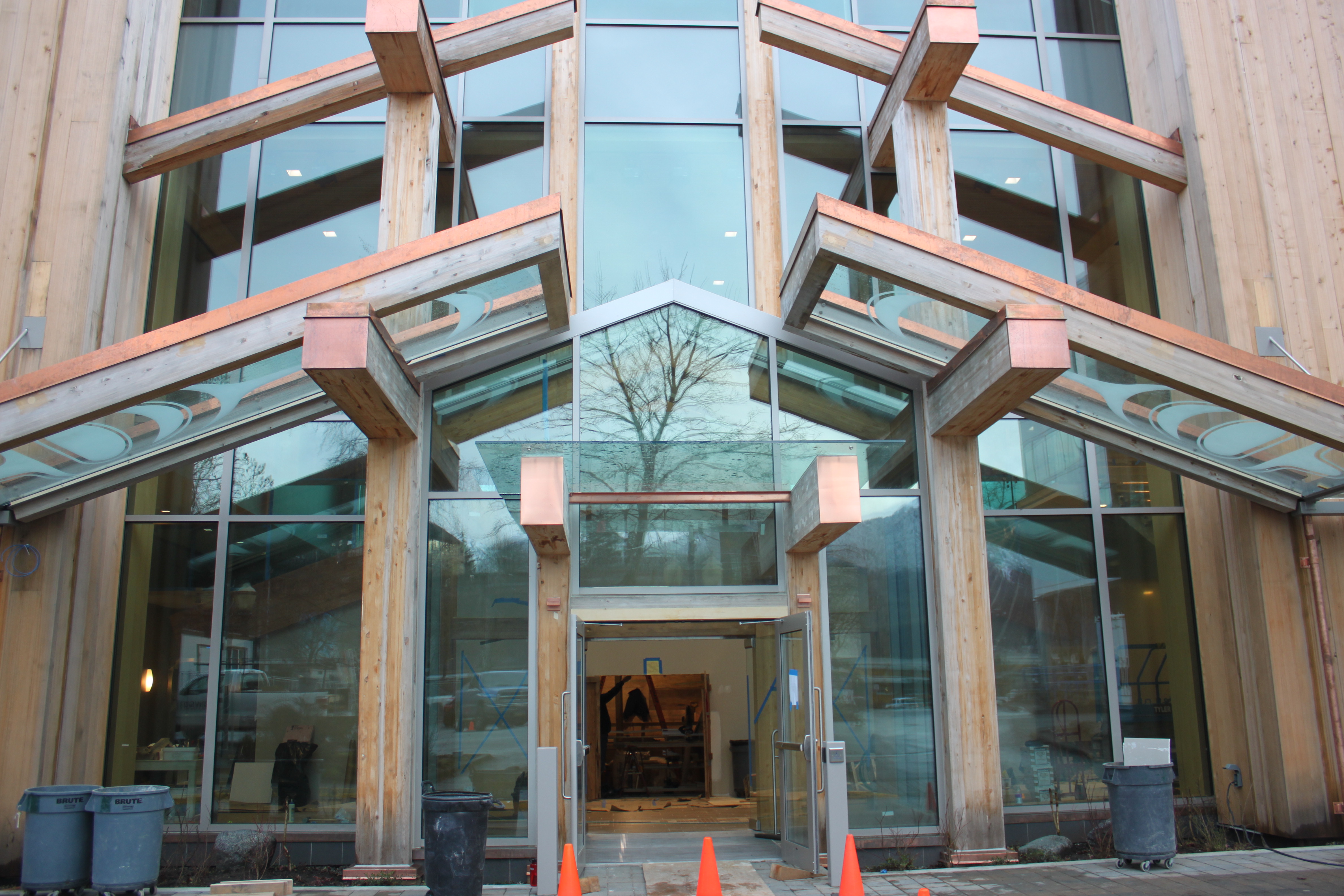Formline design expert Steve Brown created the glass sidewalk awnings that are already installed.