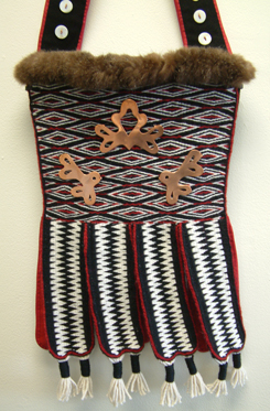 George entered a Chilkat apron with cedar bark backing and button blanket that drew on traditions from the indigenous Ainu people of Hokkaido. But it was her experiment of woven Raven’s tail and cut out copper pieces for the octopus bag that caught the judges eye.