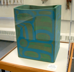 Peter Corey, Northwest art scholar and a former curator at Sheldon Jackson museum, judged customary-inspired art. He describes Northwest Coast art as strong with the formline design that appears to be pushing its bounds, the predominate and contrasting red and black, and blue and green in recessed areas. But that’s changed a little recently.