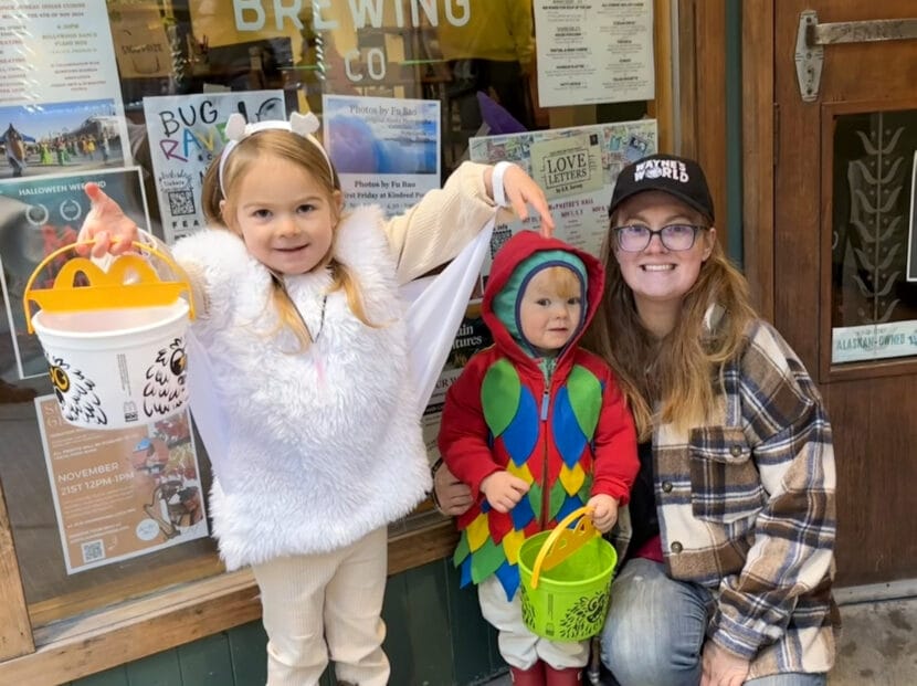 Elizabeth Bauer and her kids in homemade costumes on Halloween in 2024. (Photo courtesy of Elizabeth Bauer)