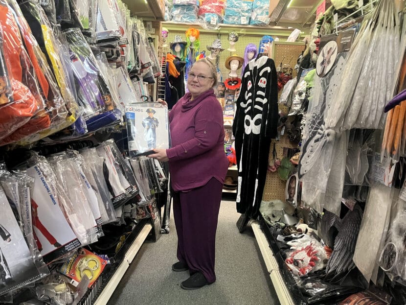 Kathy Buell in her party store Balloons by Night Moods on Oct. 23, 2025. (Photo by Yvonne Krumrey/KTOO)