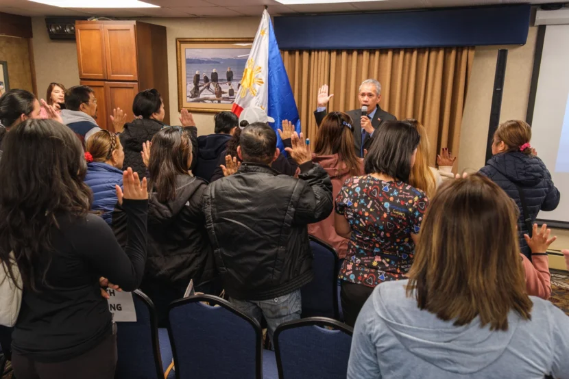 The Philippine National Anthem, “Lupang Hinirang,” played for newly sworn in citizens at Kodiak’s Best Western Hotel this week. The hotel’s Harbor Room was packed with people looking to meet with the Southeast Asian country’s visiting consulate.
