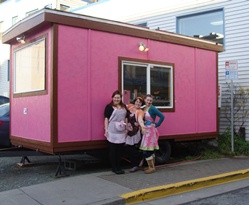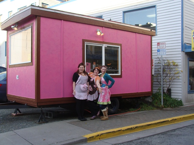 The B's Bakery and Bistro Crew outside their food trailer in downtown Juneau. (Photo by Amanda Compton/KTOO)