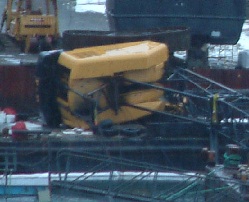 Crane that toppled Thursday afternoon at Trucano Construction - KTOO News photo