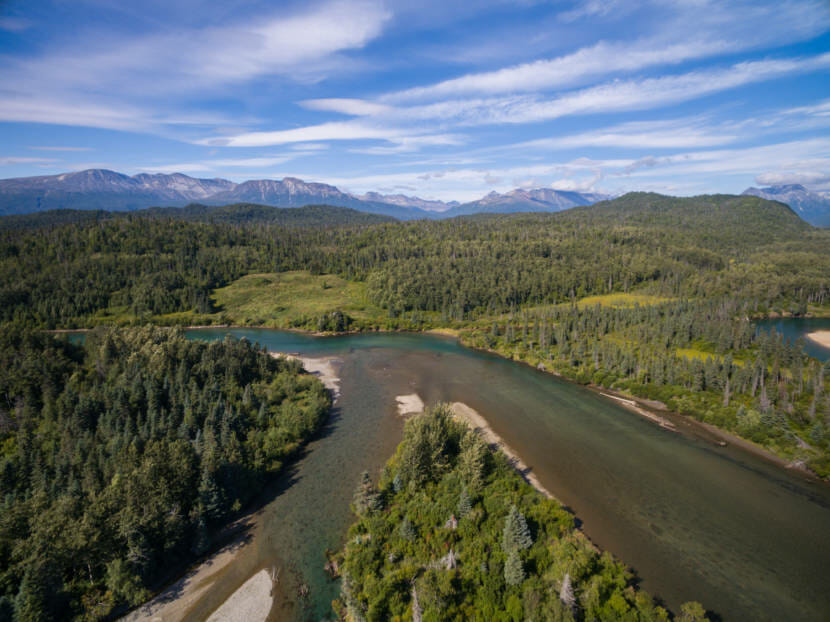 Confluence of lower Iliamna River and Chinkelyes Creek. (Jason Ching/The Conservation Fund)