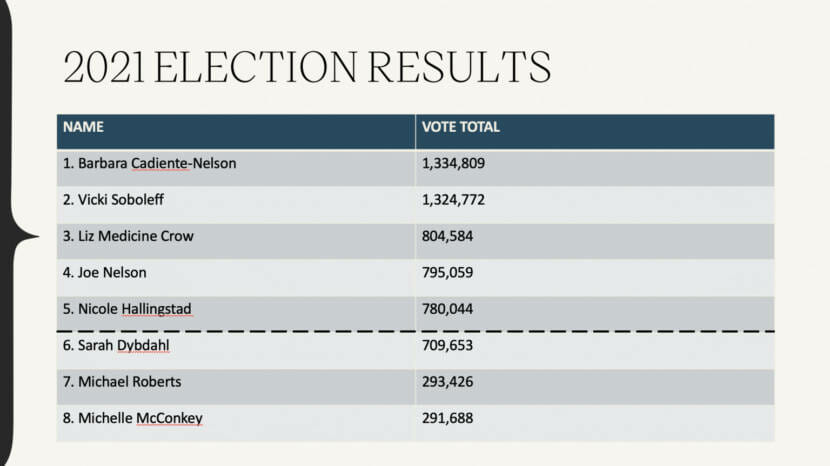 Medicine Crow was among the four board-endorsed candidates to be elected. Longtime chair Joe Nelson who has been on the board since 2003 was also reelected.