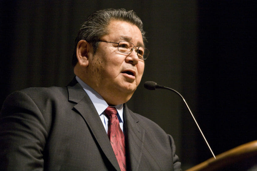 Oliver Aveogan Leavitt speaks at the 2007 Alaska Federation of Natives convention. (Courtesy ASRC)
