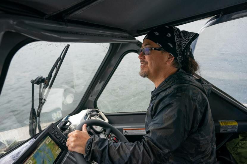 Sealaska Board Chair Joe Nelson drives his boat through Saginaw Channel on Tuesday, Sept. 14, 2021 near Juneau. (Photo by Loren Holmes/ADN)