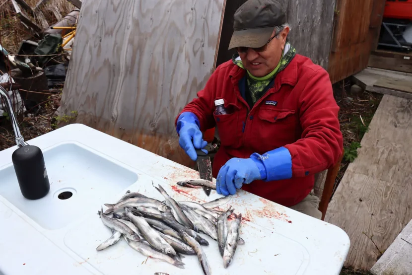 Williams is 73. He has lived in the Chilkat Valley and harvested hooligan here all his life. The fish — also known as eulachon, or saak in Tlingit — return to the area to spawn each spring. For millennia, the Chilkoot and Chilkat Tlingit people have harvested them and extracted their oil, both to trade and to keep.