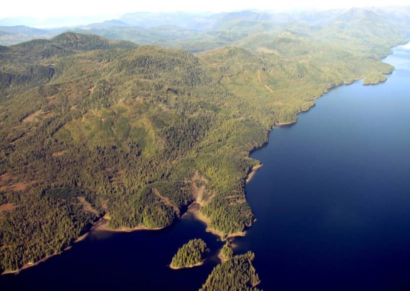 The western shores of Carroll Inlet in 2015. This region about 10 miles northeast of Ketchikan is part of the South Revilla project area, where the U.S. Forest Service proposes to offer more than 5,000 acres of old growth Tongass National Forest to commercial loggers. (Photo by Larry Edwards/Alaska Rainforest Defenders)