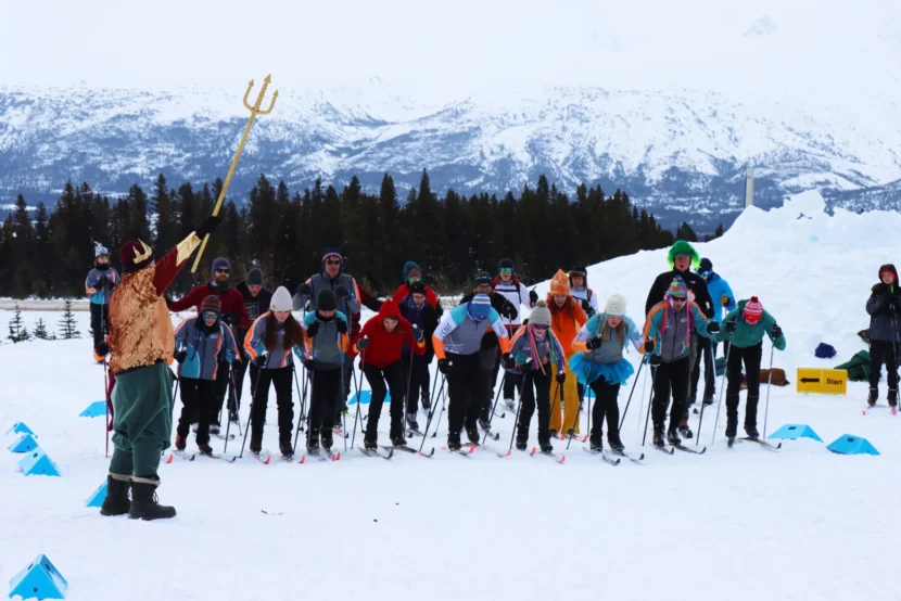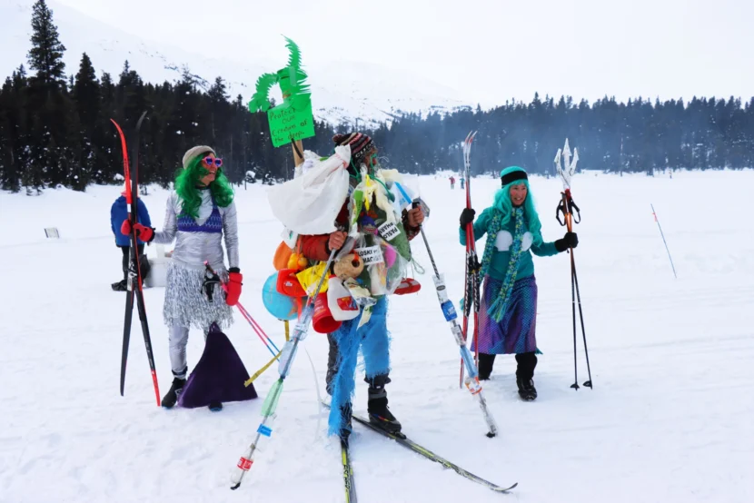 Which means on race day, the parking lot was bustling. Many people arrived dressed to this year’s theme: “creatures of the deep, enchantment of the ski.” Skiers took off from the start dressed as mermaids, jellyfish, sea monsters – and a can of tuna.