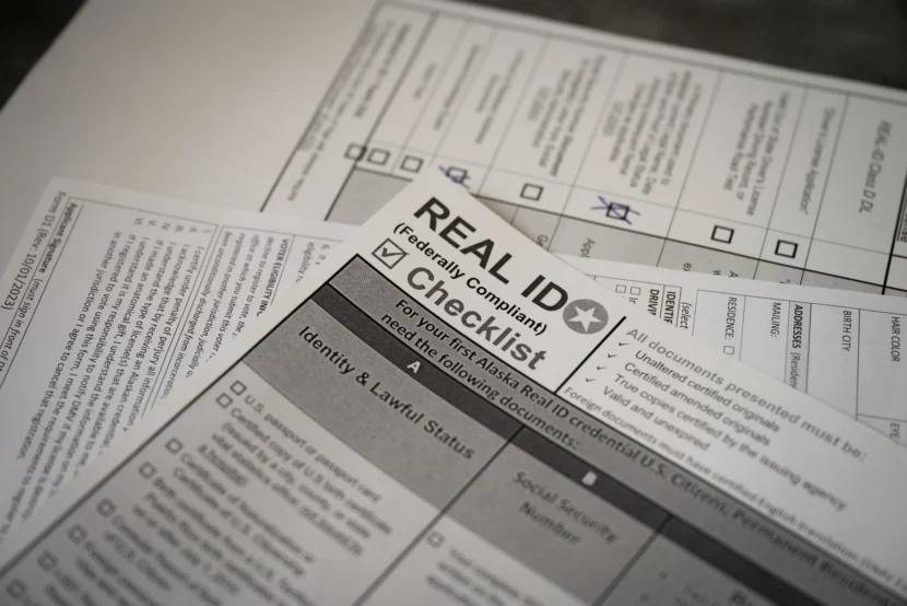 An application for a Real ID at the Alaska Division of Motor Vehicles in Anchorage on Thursday, March 27, 2025. (Matt Faubion/Alaska Public Media)