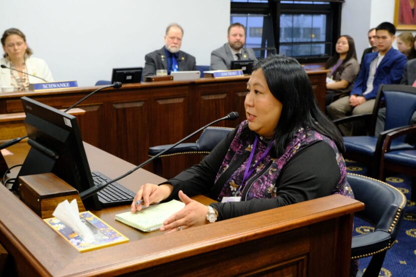 Rhonda Pitka, a board member of the Yukon Flats School District, and chief of the Beaver Village Council testifies before legislators on the challenges faced by the school districts on Feb 10, 2026 (Photo by Corinne Smith/Alaska Beacon)