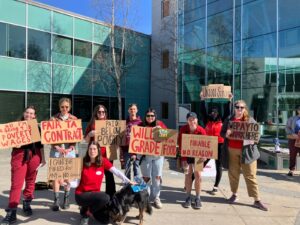 University of Alaska graduate student workers protest in support of a contract in Fairbanks, Alaska, on April 29, 2024. (Photo provided by Alaska Graduate Workers Association)