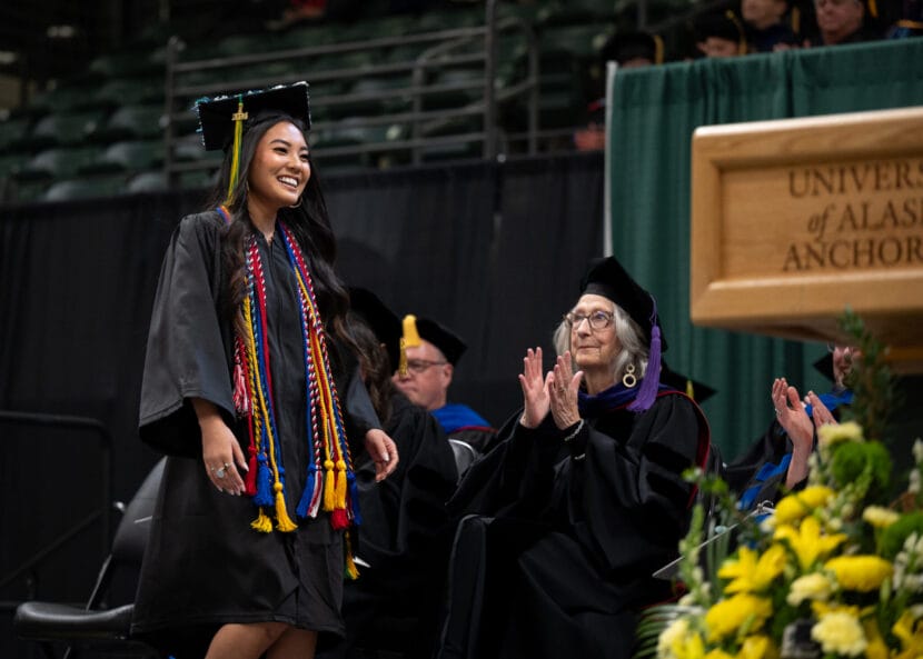 Just before receiving her diploma as a University of Alaska Anchorage graduate on Sunday, Katie Scoggin spoke to her classmates about the importance of being part of a community.