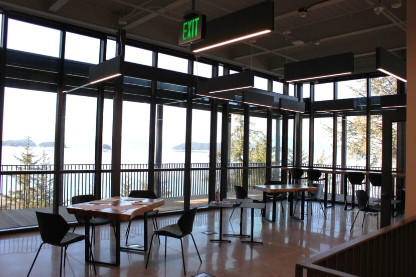 “This is the student lounge, which has a pretty stunning view out over Auke Bay and looking at Admiralty [Island]” said longtime professor of environmental science Eran Hood.