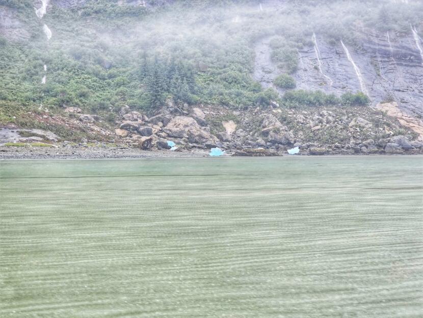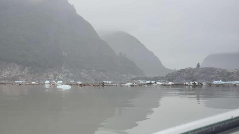 Ice and debris float in Tracy Arm on Monday, Aug. 11, 2025 following Sunday’s landslide. (Photo courtesy of Christine Smith)