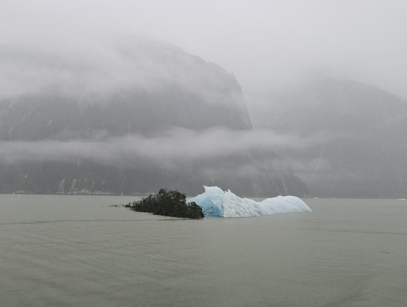 A tree and iceberg float in Tracy Arm following a landslide and tsunami on Monday, Aug. 11, 2025. (Photo courtesy of Christine Smith)