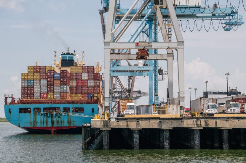 The Maersk Idaho container ship is shown at the Port of Houston Authority in 2021. (Brandon Bell/Getty Images)