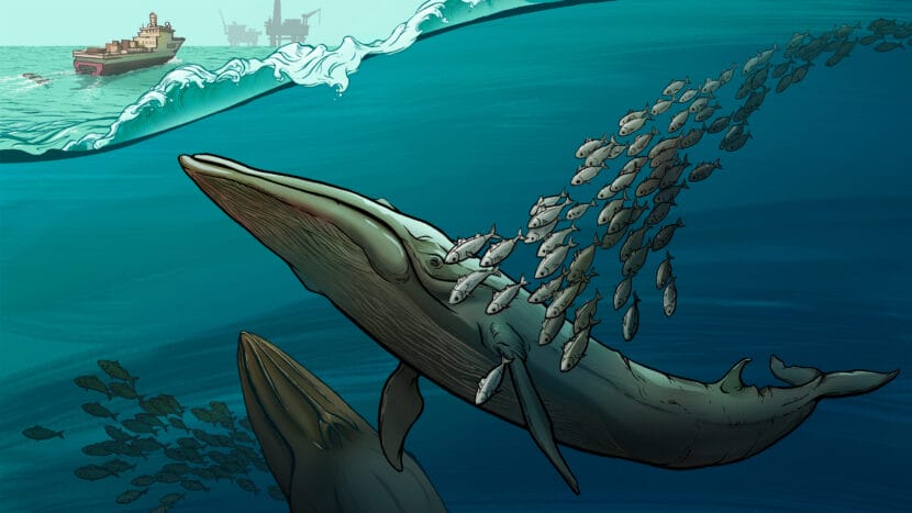 Scientists have observed that Rice’s whales have sometimes stopped making their own sounds in the presence of ships. But the noise from seismic air gun surveys is still more powerful.