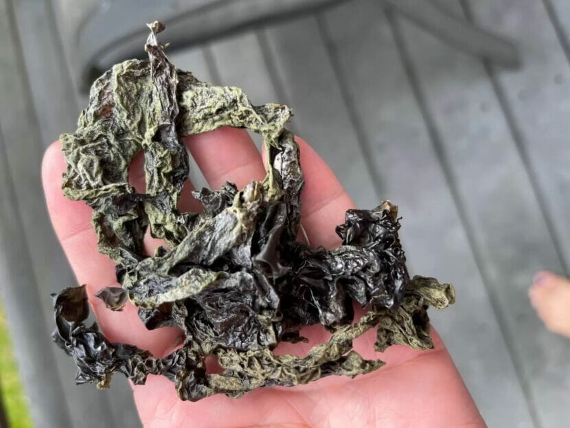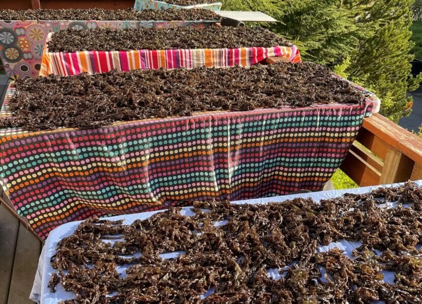 Dundas harvests about 50 gallons to share with family and friends. Processing is lengthy, drying the seaweed into bite-sized pieces.