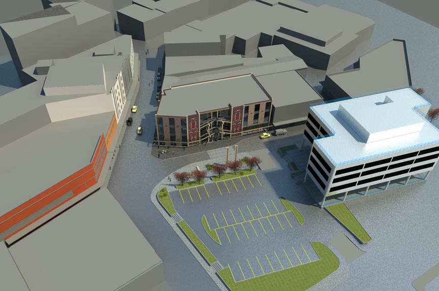 Design drawings for the Soboleff Center show no additional off-street parking. Surface parking would be available at the Sealaska Plaza lot directly across the street.