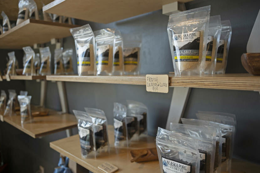 A display of Alaska sea salt products. (Tash Kimmel/KCAW)