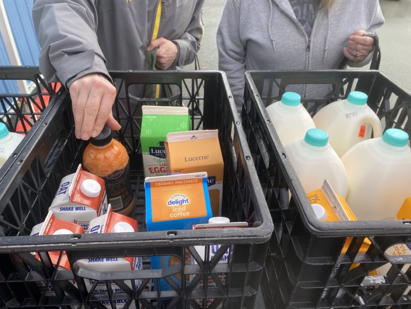 Juneau residents select some dairy products at Southeast Alaska Food Bank in Juneau. November 15, 2022. (Claire Stremple/KTOO)
