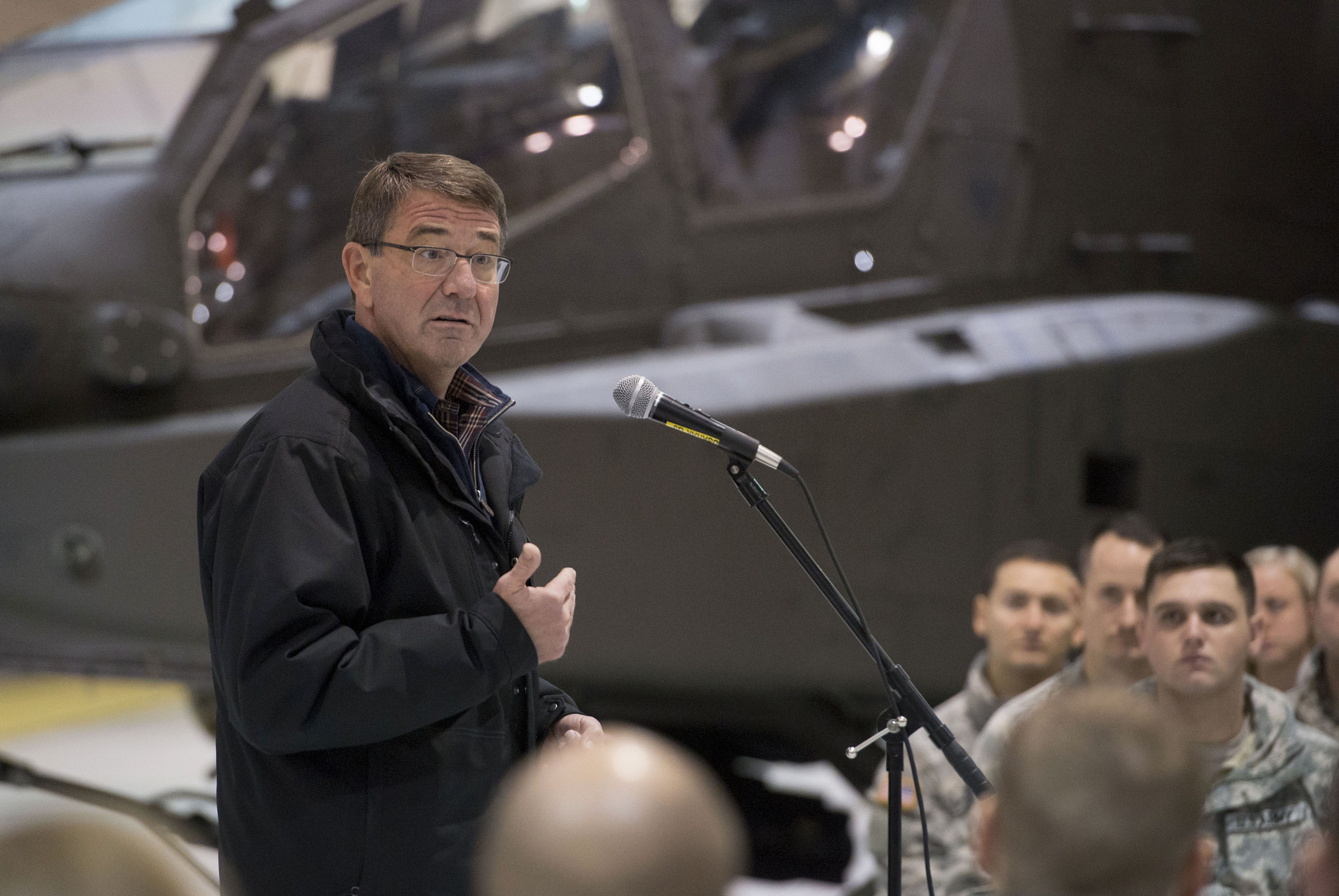 U.S. Secretary of Defense Ash Carter speaks with soldiers and airmen during a visit to Fort Wainwright, Alaska Oct. 30, 2015 as part of his Asia-Pacific theater trip. (Creative Commons photo by Senior Master Sgt. Adrian Cadiz)