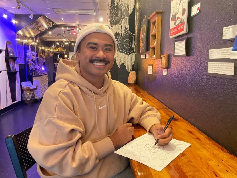 David Abad demonstrates pod mapping inside Black Moon Koven in Juneau on Oct. 13, 2022. (Photo courtesy of David Abad)