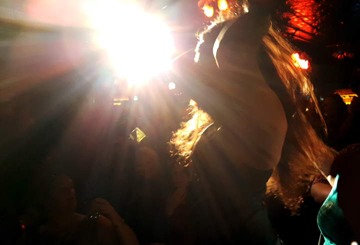 Raven Natkong dances in the spotlight at Rendezvous during Friday's amateur drag show. (Photo by Tripp J Crouse/KTOO)
