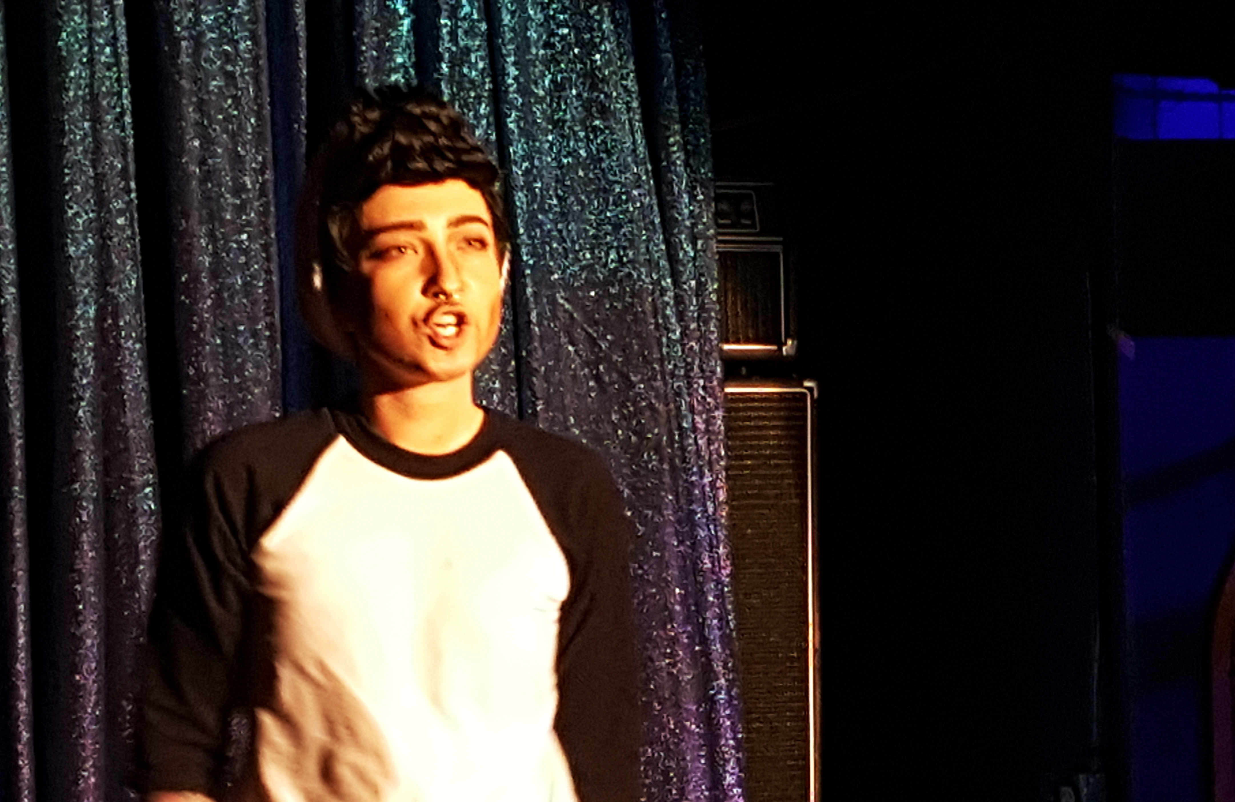 Raven Natkong performs on stage at Rendezvous during Friday's amateur drag show. (Photo by Tripp J Crouse/KTOO)