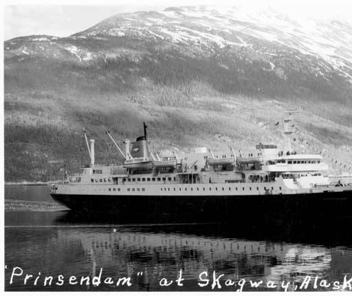The Prinsendam on a postcard, pictured at Skagway before the fire. (Photo courtesy of the Alaska State Library)